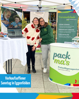 Beim verkaufsoffenen Sonntag in Eggenfelden waren Kathrin Gratz von der Freiwilligenagentur pack ma’s und Franzi Noneder von Dahoam in Niederbayern mit einem Infostand vor Ort.